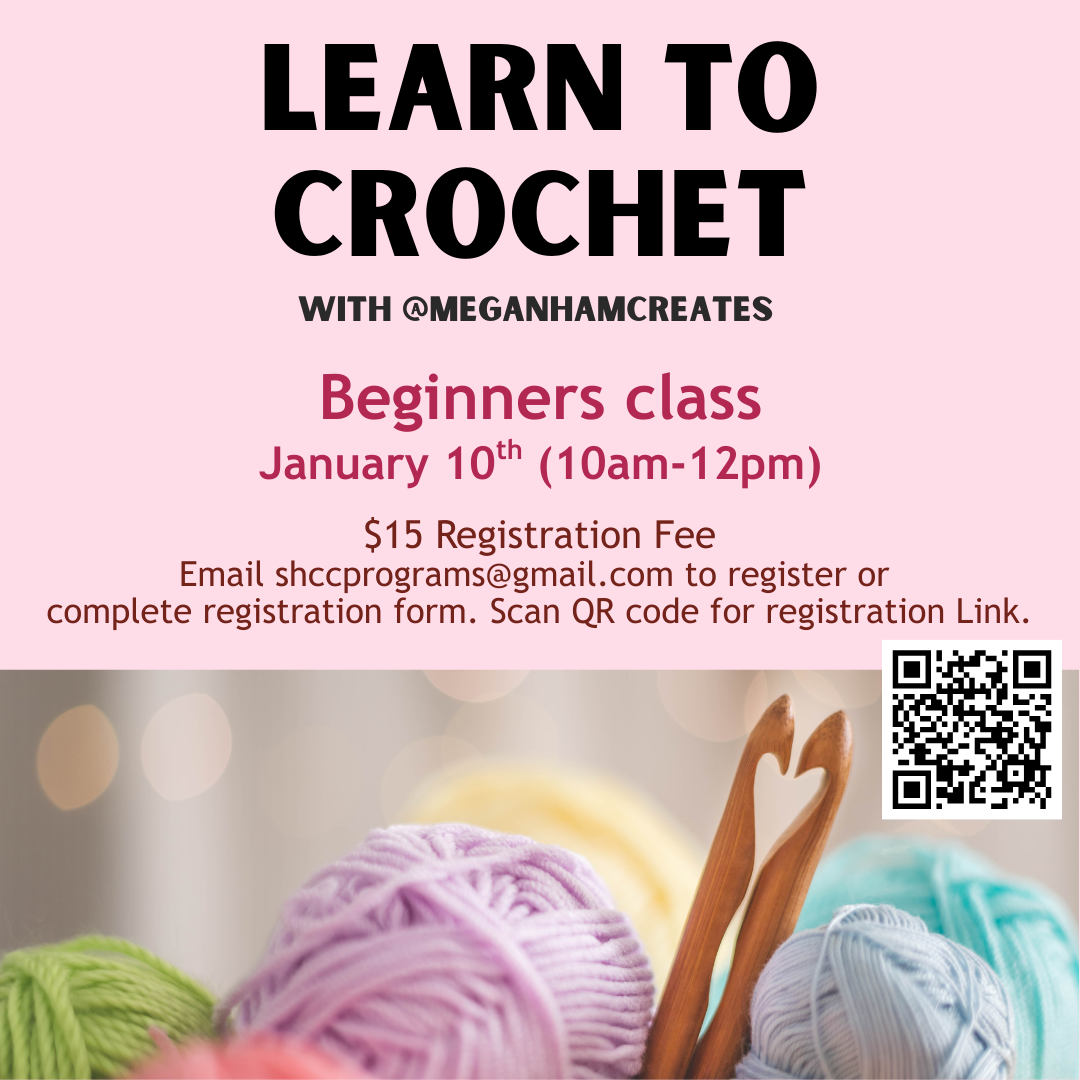 Learn to Crochet Workshops Click Here for Learn to Crochet Registration Form: Click Here for Advanced Beginner Registration Form